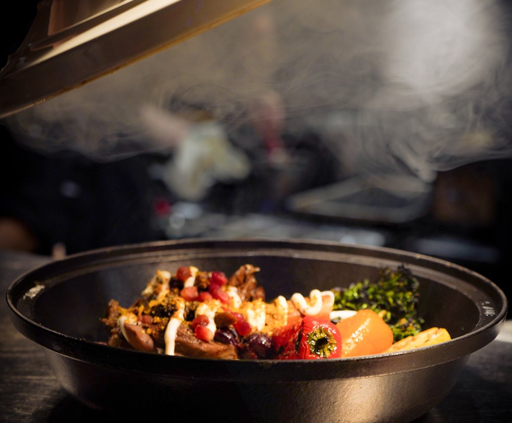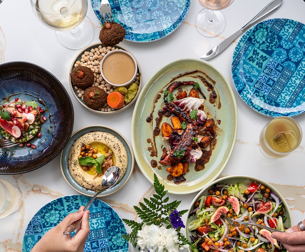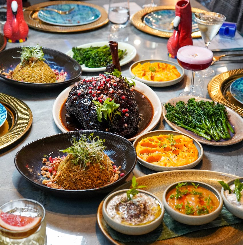 For the main course, guests can savor sumptuous entrées from the fire, including Lamb Aleppo Kebab with pine nut, cilantro, and red pepper, Tiger Prawns with cilantro, dill, garlic, and smoked pepper, and Beef Tenderloin with roasted pepper, crispy onion, and Levant sauce. Share Plates such as Whole Branzino with smoked pepper and lemon, Roasted Cauliflower with jalapeño coconut, pistachio dukkah, maple tahini, and pomegranate, Lamb Shank Tagine with wild rice, saffron, pistachio, sour cherry, and garlic labneh, and a 24oz Cowboy Steak with harissa garlic butter, smoked sea salt, and pickled pepper offer a convivial dining experience that celebrates the essence of social and sharing experiences.